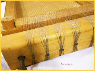 Quando avete predisposto tutto, tagliate dal panetto dei pezzi di pasta e con il mattarello stendeteli, ma non troppo, gli spaghetti alla chitarra devono essere alti, quadrati, poi li mettete sulle corde (come si vede dalla foto) e ci passate sopra il mattarello, la pasta a quel punto cade nel vano di sotto, voi la prendete e la mettete infarinata in un tagliere o sulla spianatoia, e continuate fino ad esaurimento pasta.